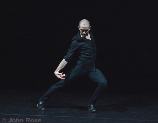 The initial phase of the evening features two contrasting solos from Agudo, a fiercely powerful flamenco combination choreographed by Rafael Amargo and an expressively smooth Kathak performance created by Nahid Siddiqui. The flamenco style demonstrates Agudo’s Spanish roots as he masters the frantic rhythms with controlled confidence. The production feels bold with stark white light creating angular shapes around the space. This atmosphere switches as the stage is flooded with a soft orange light and Agudo dons the Ghungroos ankle bells for his Kathak solo. This atmospheric change is reflected in Agudo’s whole being as he performs with a stunning sense of sensitivity. Agudo shows an astonishing ability to master these juxtaposing styles. But whether it is the masculine flamenco or the spiritual Kathak, Agudo manages to find common ground with his furiously fast moving feet. Although these opening solos exhibit Agudo’s dexterous versatility, they feel like a segregated showcase with little connection to the overall thematic intensions of the work.